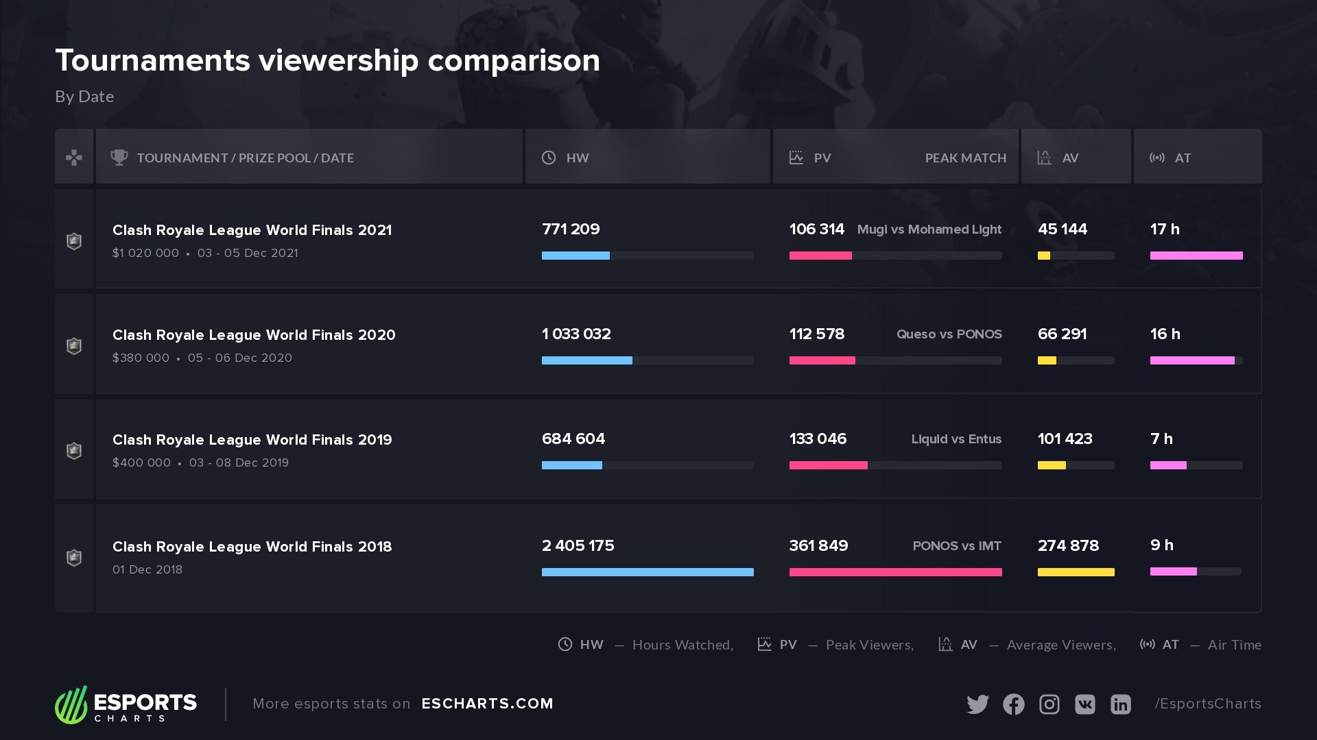 In 2020, Clash Royale entered the top 5 games of the year – but the game may well fall out of the ranking this year due to the lack of viewership. That’s something we will inform you about in the nearest results of the outgoing year. For now, subscribe to our social networks to avoid missing statistics on the best titles, streamers, and tournaments.