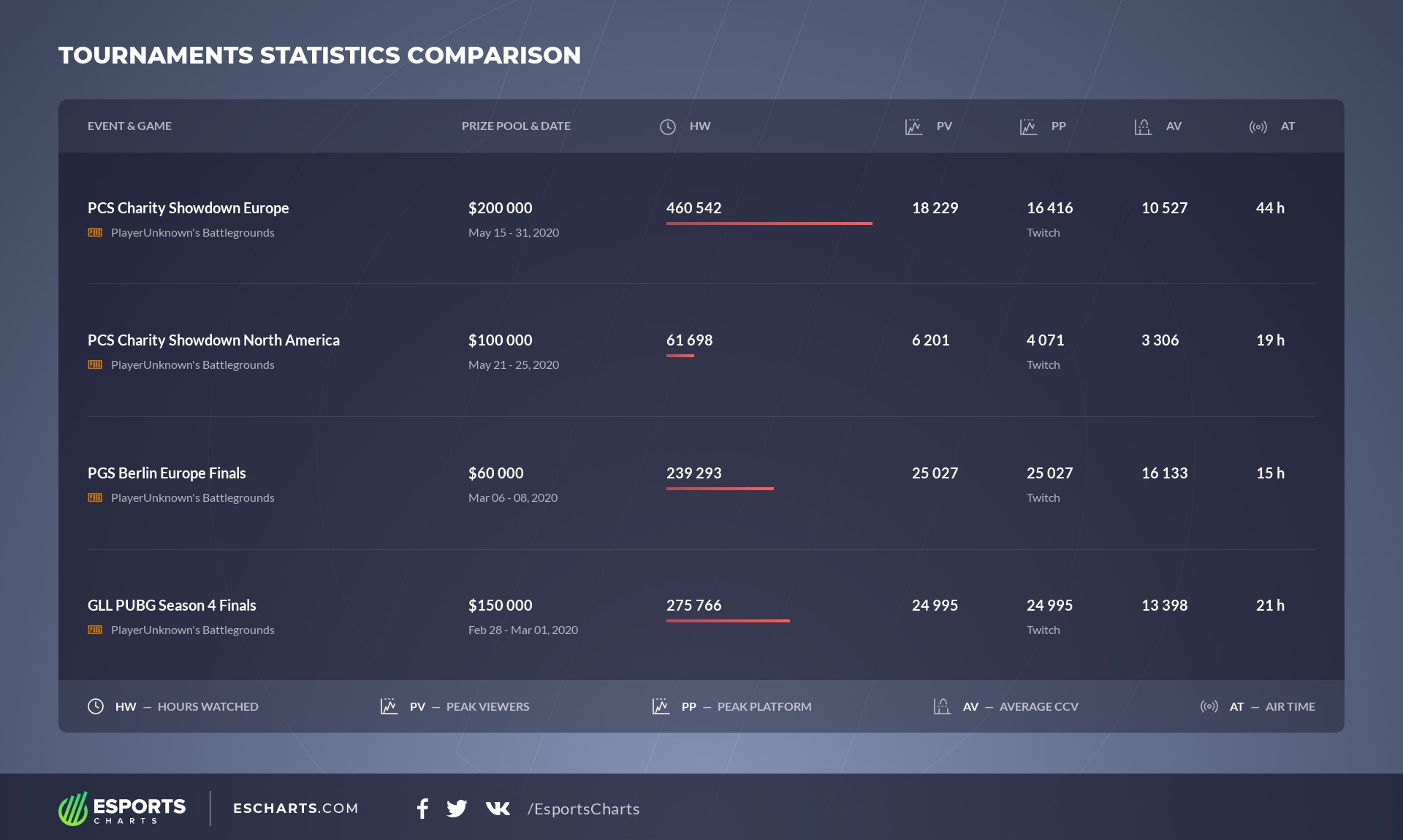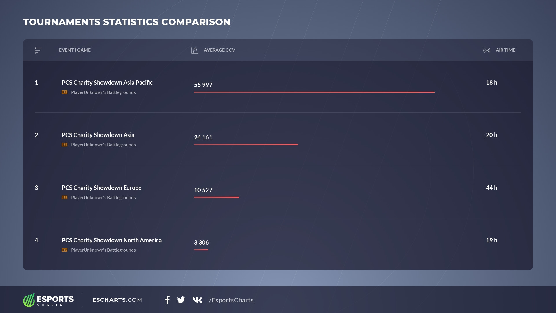 Let's take a look at how the competitive part of the discipline has shown itself using the PCS Charity Showdown as an example. We'll compare the results of all four regions with each other, as well as with the latest PlayerUnknown's Battlegrounds tournaments.