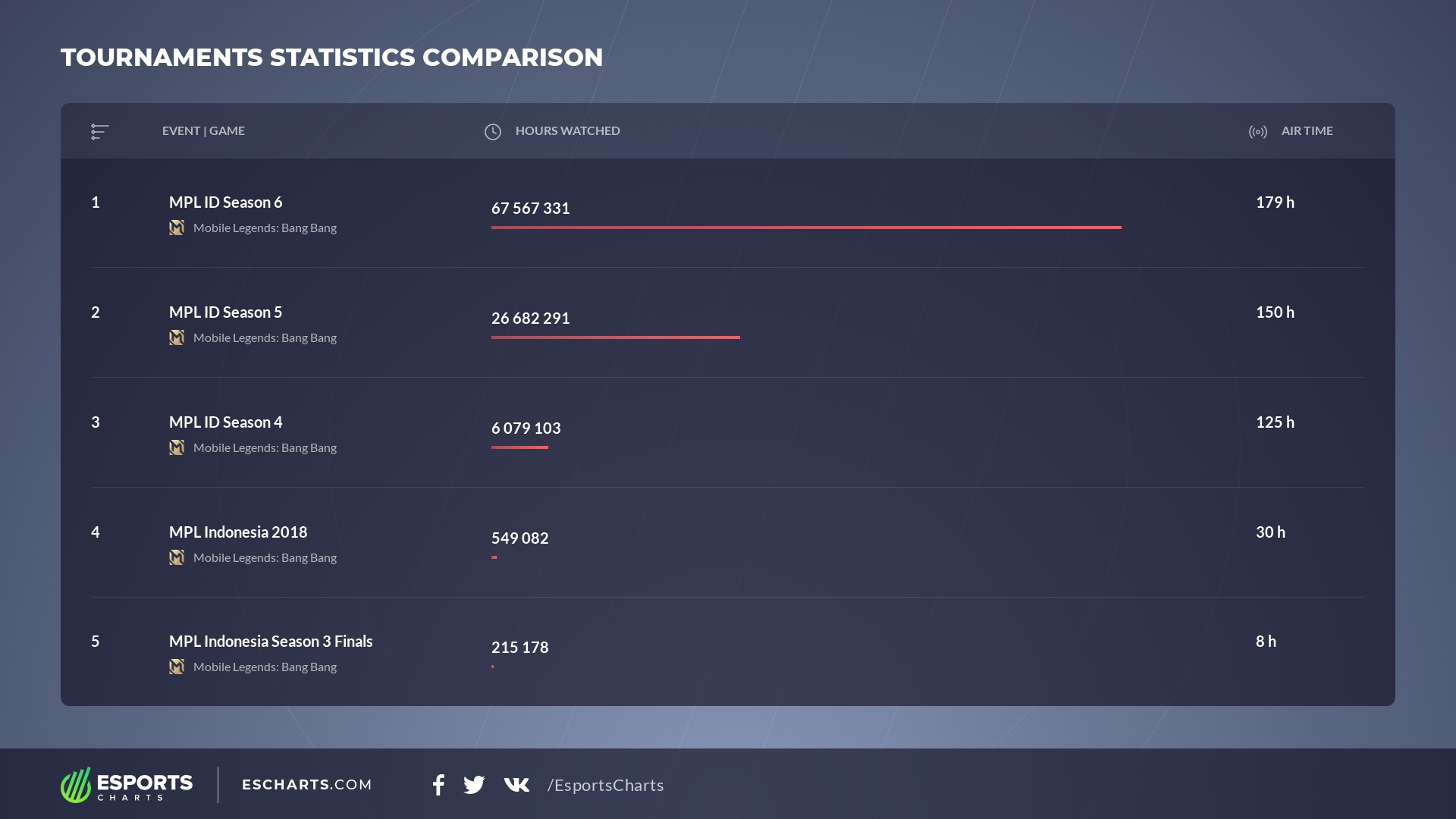 Season 6 of the Indonesian League was able to set a new record by Peak Viewers and become the most popular tournament in the Mobile Legends: Bang Bang discipline for all time. Compared to Season 5, the peak increased by 145% (68,4% without NimoTV).