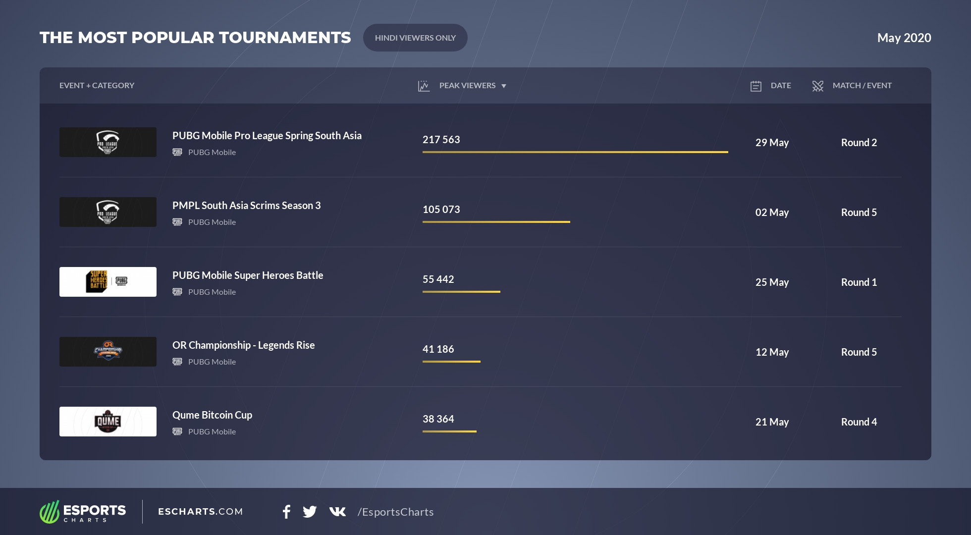 As we can see, mobile esports and PUBG Mobile are leading in this region.