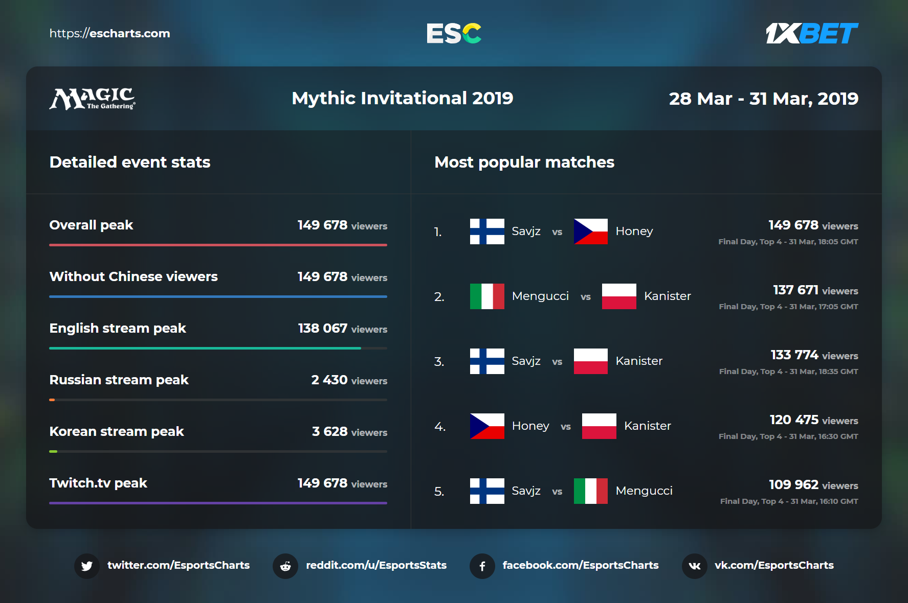 Surprisingly, the peak figure was not reached during the tournament's finals. The match between Savjz and Honey has attracted most of the attention. The second most popular match was the one with the participation of Mengucci and Kanister. As for the grand final, it did not even manage to enter the top 5 of this kind of rating.