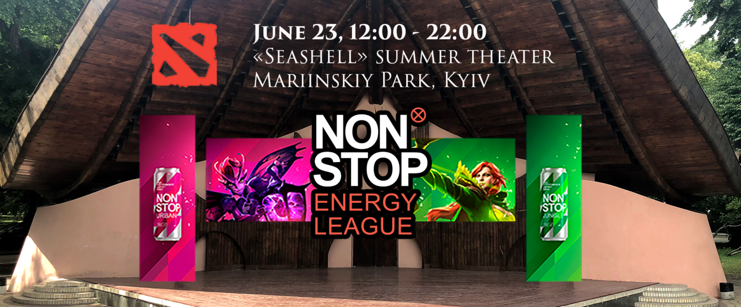 23rd of June 2018. Summer theater "Seashell" (Mariinsky Park) will host the Grand Final of the Non Stop Energy League - an esport tournament for Dota 2. The total prize fund of the tournament is 120,000 UAH of which 80,000 UAH will be distributed between finalists.