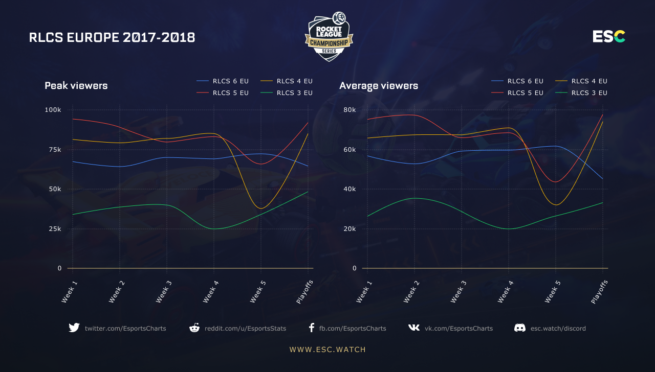 So far the most successful season is the fifth, which took place from March to June 2018. The list of participants in the regions can be called stellar: Cloud9, Evil Genius, NRG Esports, G2 Esports in North America, in Europe: Fnatic, Team EnVyUs, compLexity Esports, PSG eSports, FlipSid3 Tactics. This fact attracted a lot of fans and viewers to the qualifying championships from the first week. It had the huge drop during the last week (the same the previous season did), but all viewers returned and multiplied during the playoffs.