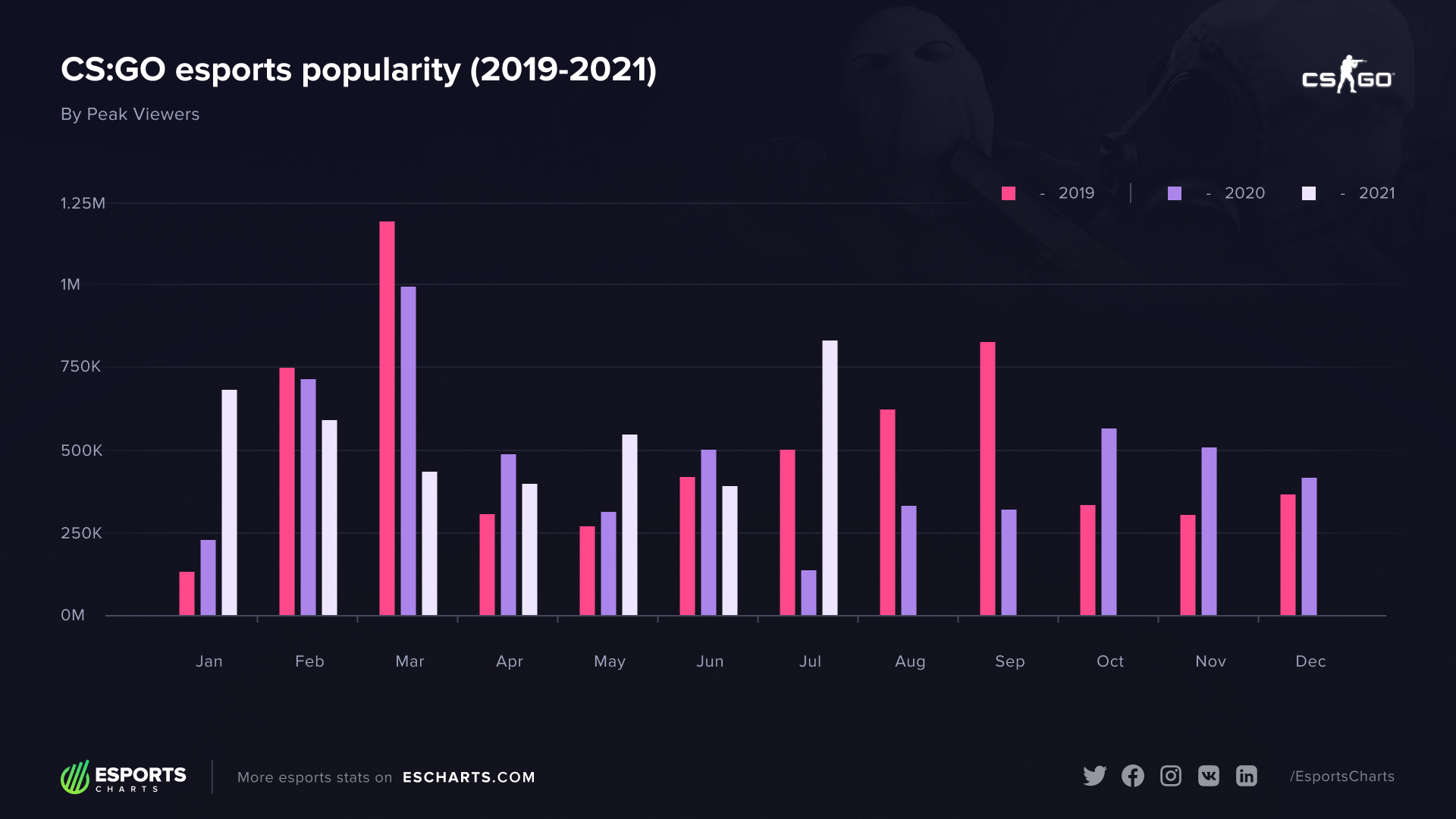 Резюмируя, пандемия существенно изменила привычный порядок вещей на сцене CS:GO: пропали традиционные LAN-соревнования, киберспортсмены неустанно жалуются на “день сурка” и выгорание и бесконечных онлайн-турниров. Но при всех проблемах CS:GO умудряется только наращивать аудиторию соревнований. Насколько сильно же выросли просмотры дисциплины при COVID-19?