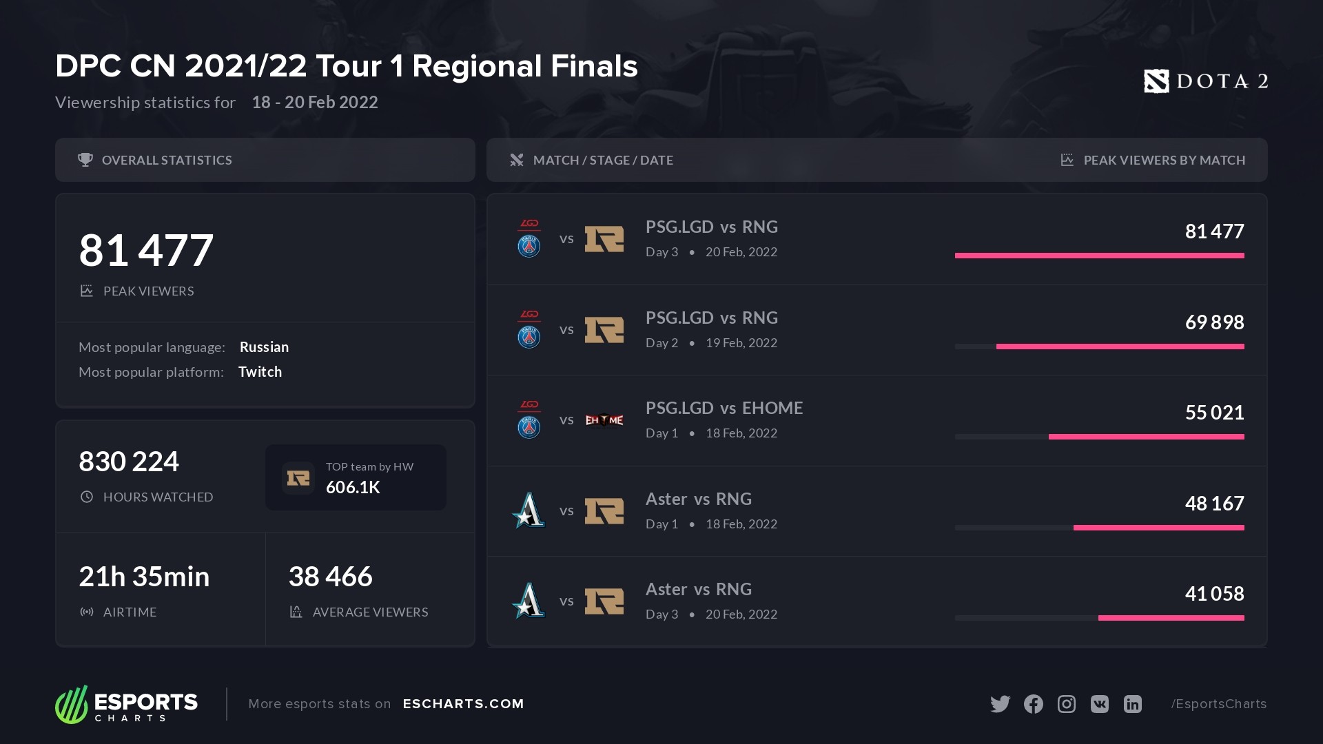 Общая зрительская статистика региональных финалов DPC 2021/22 Tour 1
